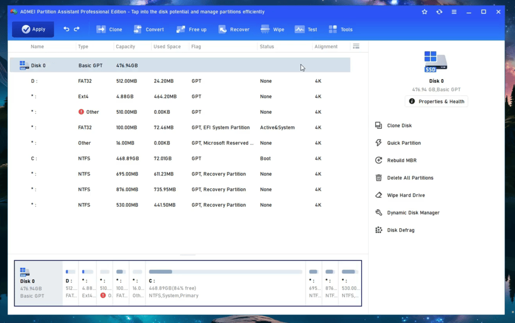 AOMEI Partition Assistant is designed for IT professionals, system administrators, technicians, and consultants to generate new revenue by providing paid technical services to their clients. It is a valuable and independent hard disk partition management toolkit. Also, it is available for internal use to manage large, distributed groups of PCs and servers across multiple locations.