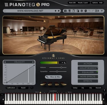 This approach allows Pianoteq to deliver expressive dynamics, detailed tonal control, and fast performance while maintaining a relatively small installation size. Users can adjust numerous sound parameters such as hammer hardness, string length, microphone positioning, and resonance characteristics to tailor the instrument to their specific needs.